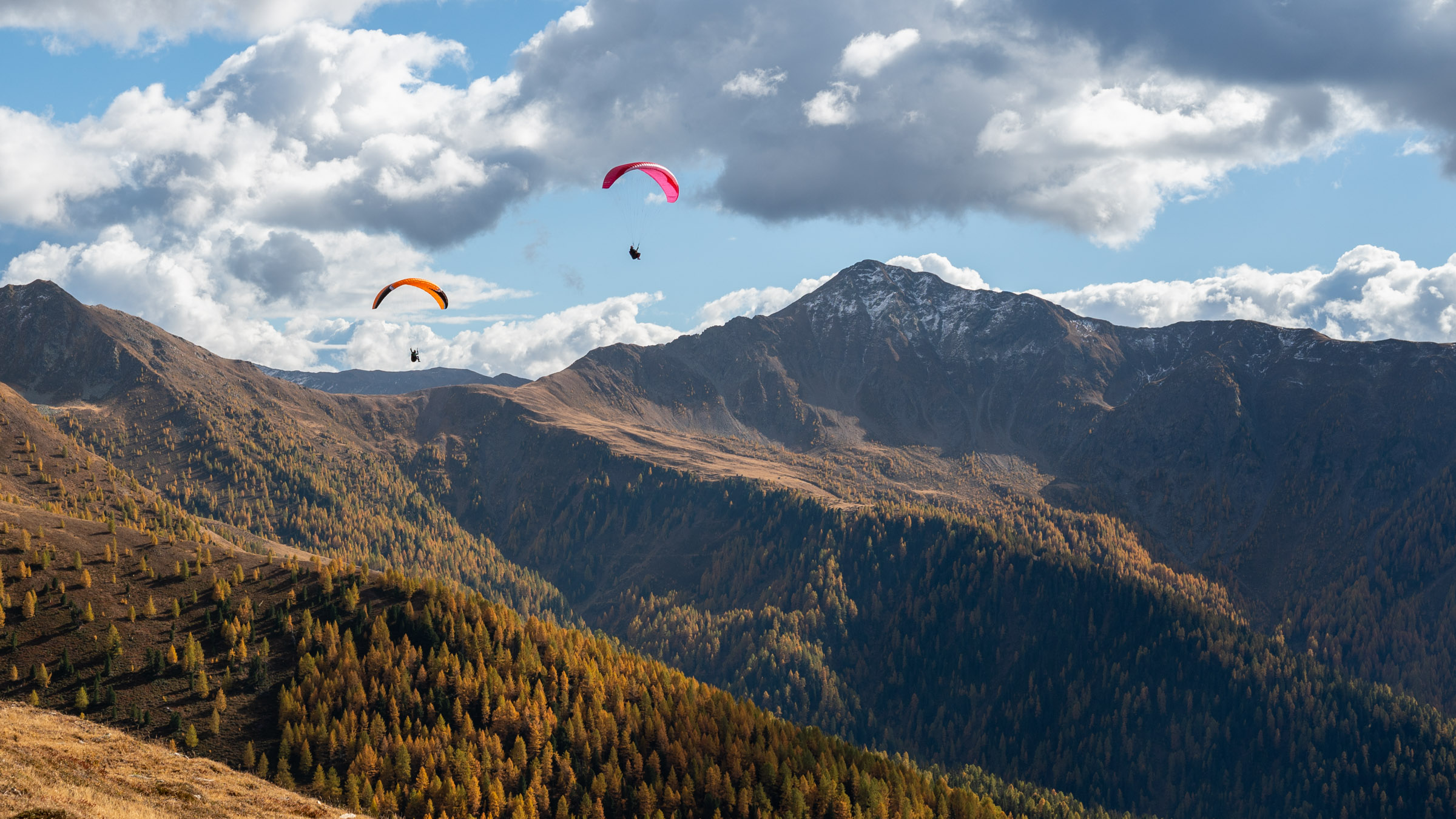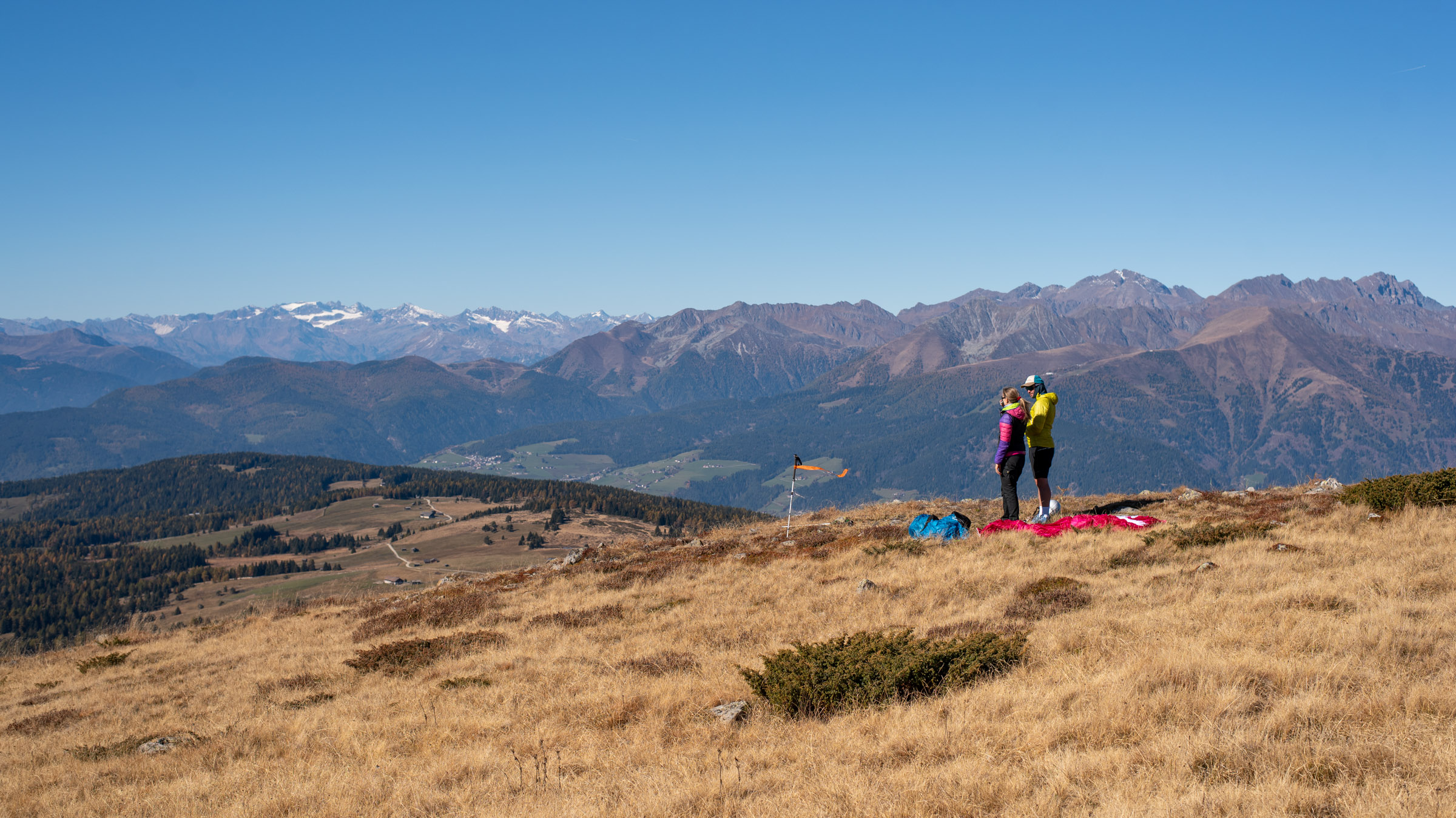Eine Hike & Fly Woche (wie) aus dem Bilderbuch: strahlende Sonne, goldene Lärchen, interessante Herausforderungen, grandiose Thermikflüge und ein schönes Gruppenerlebnis in Südtirol.