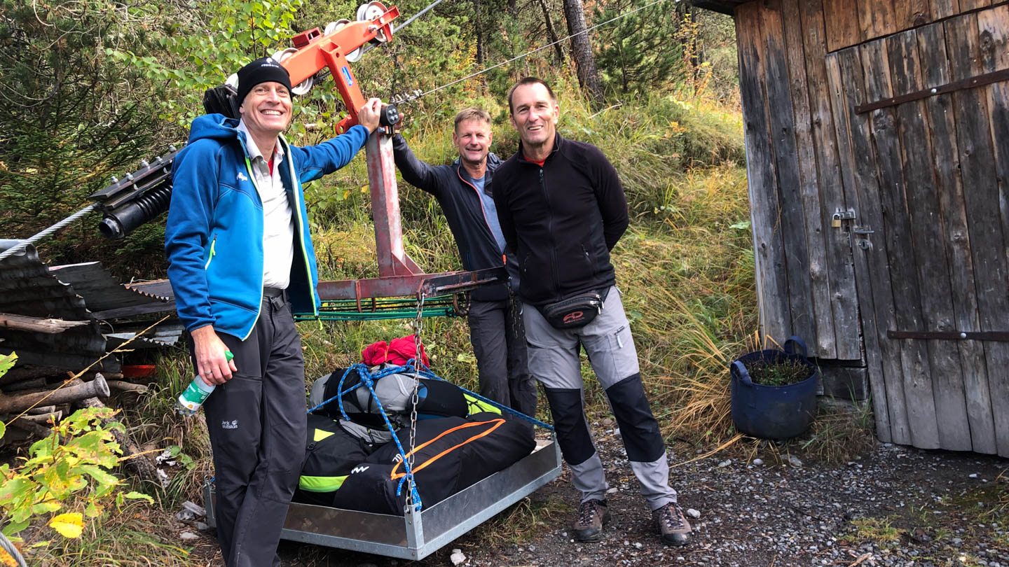 Wir haben Glück! Nicht nur das Wetter ist besser als noch vor drei Tagen angekündigt, Heidi, die Hüttenwirtin von der Doldenhornhütte braucht auch noch Brot, wenn vier Esser mehr kommen. Natürlich bringen wir das mit, aber es gibt - yeah - eine Materialseilbahn und da dürfen unsere Gleitschirme schon mit hoch fahren. Nun müssen unsere Füße nur noch uns zur Hütte tragen, wir genießen den Aufstieg entsprechend in vollen Zügen bei guter Sicht und oben in der Hütte gibt es an der Doldenhornnordwand sogar noch etwas Sonne. Wir tun, was wir eigentlich pausenlos tun, staunen und genießen. Auch wenn wir zwischendurch immer mal wieder abgedrehte Geankenspiele spielen: Ist die Erde eine Kugel oder doch eine Scheibe oder in Wirklichkeit eine Pyramide und was haben Quantentheorie und Heisenbergsche Unschärferelation damit zu tun?