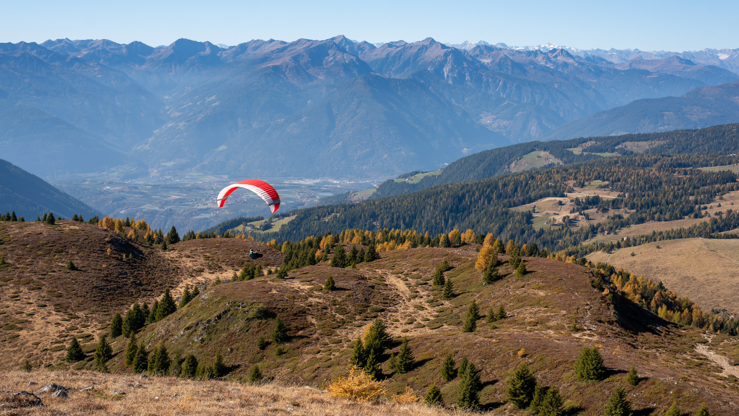 Eine Hike & Fly Woche (wie) aus dem Bilderbuch: strahlende Sonne, goldene Lärchen, interessante Herausforderungen, grandiose Thermikflüge und ein schönes Gruppenerlebnis in Südtirol.